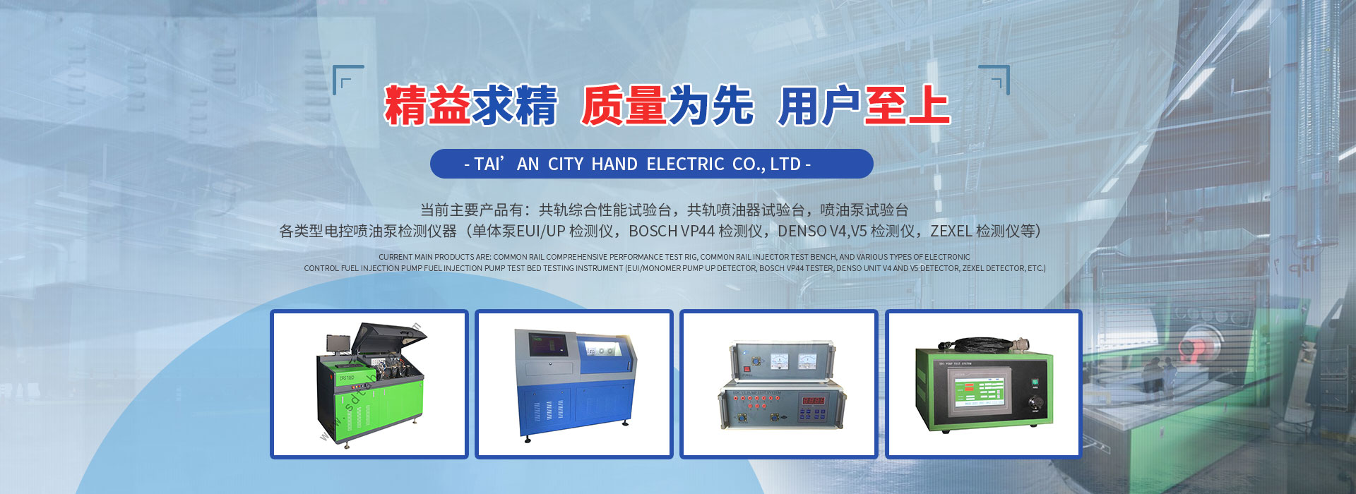 泰安市漢德電氣有限責(zé)任公司是設(shè)計(jì)、制造和生產(chǎn)內(nèi)燃機(jī)檢測(cè)試驗(yàn)設(shè)備的企業(yè),集生產(chǎn)制造、配件銷售為一體。隨著全球環(huán)境對(duì)環(huán)保要求的日益提高,內(nèi)燃機(jī)技術(shù)相應(yīng)取得長(zhǎng)足進(jìn)步,尤其是柴油機(jī)噴射系統(tǒng)正向著高壓、電控技術(shù)的方向迅猛發(fā)展,基于此,我們公司目前著力開發(fā)、拓展專門針對(duì)于高壓共軌系統(tǒng)和其他電控噴射系統(tǒng)的檢測(cè)設(shè)備,當(dāng)前主要產(chǎn)品有:共軌綜合性能試驗(yàn)臺(tái),共軌噴油器試驗(yàn)臺(tái),噴油泵試驗(yàn)臺(tái),各類型電控噴油泵檢測(cè)儀器...